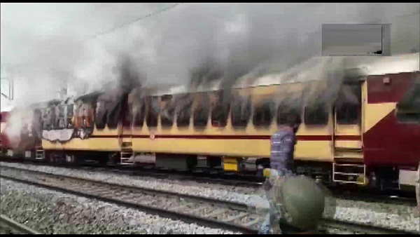 ರೈಲ್ವೇ ಪರೀಕ್ಷೆಗೆ ಸಂಬಂಧಿಸಿದಂತೆ ಅಭ್ಯರ್ಥಿಗಳ ಗಲಾಟೆ, ಕಲ್ಲು ತೂರಾಟ, ರೈಲಿಗೆ ಬೆಂಕಿ