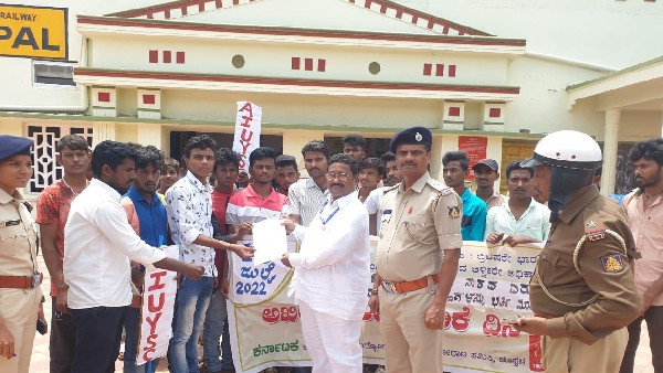 ರೈಲ್ವೇ ಇಲಾಖೆಯಲ್ಲಿ 90,000 ಹುದ್ದೆಗಳನ್ನು ರದ್ದುಪಡಿಸುವ ನಿರ್ಧಾರ ತಕ್ಷಣವೇ ಹಿಂಪಡೆಯಬೇಕು. ರೈಲ್ವೆ ಇಲಾಖೆಯಲ್ಲಿ ಖಾಲಿ ಇರುವ ಎಲ್ಲಾ ಹುದ್ದೆಗಳನ್ನು ನೇಮಕ ಮಾಡಿಕೊಳ್ಳಬೇಕು ಹಾಗೂ ರೈಲ್ವೇ ಖಾಸಗೀಕರಣ ಕೈಬಿಡಬೇಕು ಎಂದು ಆಗ್ರಹಿಸಿ ಅಖಿಲ ಭಾರತ ನಿರುದ್ಯೋಗಿ ಯುವಜನರ ಸಮಿತಿಯ ಕಾರ್ಯಕರ್ತರು ಜಿಲ್ಲಾ ರೈಲು ನಿಲ್ದಾಣಗಳ ಬಳಿ ಪ್ರತಿಭಟನಾ ದಿನವನ್ನು ಆಚರಿಸಿ, ರೈಲ್ವೇ ಸಚಿವರಿಗೆ ಬರೆದ ಮನವಿಯನ್ನು ಆಯಾ ಸ್ಟೇಷನ್ ಮಾಸ್ಟರ್ ಅವರಿಗೆ ಸಲ್ಲಿಸಲಾಗಿದೆ.