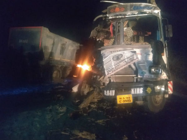 ಲಾರಿ ಅಪಘಾತ: ಸುಟ್ಟು ಕರಕಲಾದ ಇಬ್ಬರು ಚಾಲಕರು