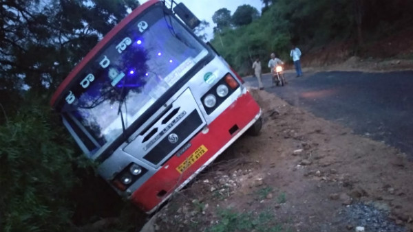 ಕಾಡಾನೆ ಹಿಂಡಿಗೆ ಆಗುವ ಡಿಕ್ಕಿ ತಪ್ಪಿಸುವ ಯತ್ನದಲ್ಲಿ ಹಳ್ಳಕ್ಕೆ ಉರುಳಿದ ಬಸ್