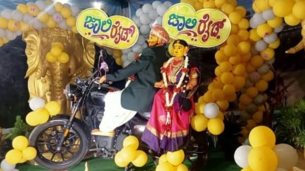 ಬುಲೆಟ್ನಲ್ಲಿ ಜಾಲಿ ರೈಡ್ ಹೊರಟ ರತಿ ಮನ್ಮಥ: ಚನ್ನಪಟ್ಟಣದಲ್ಲಿ ಹೋಳಿ ಸಂಭ್ರಮ