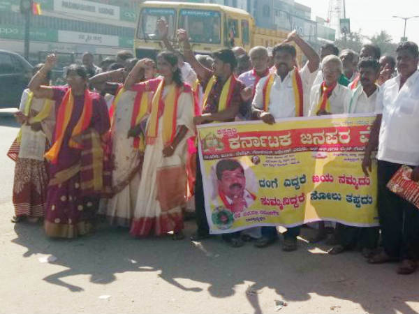 ಗುರುವಾರ ರಾಮನಗರದ ಐಜೂರು ವೃತ್ತದಲ್ಲಿ ಕಸ್ತೂರಿ ಕರ್ನಾಟಕ ಜನಪರ ವೇದಿಕೆಯ ಕಾರ್ಯಕರ್ತರು ಜಿಲ್ಲಾಧ್ಯಕ್ಷ ಬೆವೂರು ಯೋಗೇಶ್ ನೇತೃತ್ವದಲ್ಲಿ ಪ್ರತಿಭಟನೆ ನಡೆಸಿ ಆಕ್ರೋಶ ವ್ಯಕ್ತಪಡಿಸಿದರು.