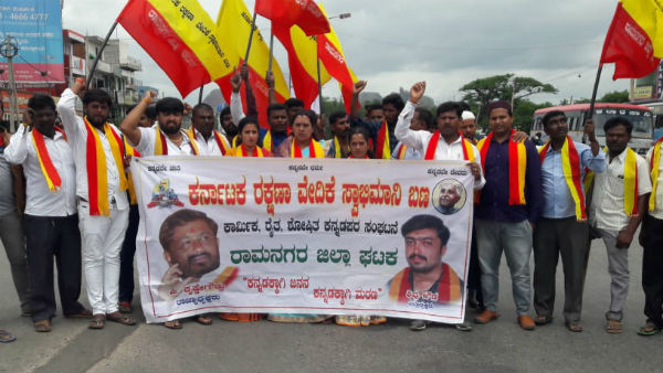 ರಾಮನಗರ, ಸೆಪ್ಟೆಂಬರ್ 16: ಕಳೆದ ಜೆಡಿಎಸ್-ಕಾಂಗ್ರೆಸ್ ಸರ್ಕಾರದ ಅವಧಿಯಲ್ಲಿ ಕನಕಪುರ ತಾಲೂಕಿಗೆ ಮಂಜೂರಾಗಿದ್ದ ವೈದ್ಯಕೀಯ ಕಾಲೇಜನ್ನು ಏಕಾಏಕಿ ಚಿಕ್ಕಬಳ್ಳಾಪುರ ಜಿಲ್ಲೆಗೆ ವರ್ಗಾಯಿಸಿದ್ದನ್ನು ಖಂಡಿಸಿ ಕರ್ನಾಟಕ ರಕ್ಷಣಾ ವೇದಿಕೆ ಸ್ವಾಭಿಮಾನಿ ಬಣ ಕಾರ್ಯಕರ್ತರು ಇಂದು ಪ್ರತಿಭಟನೆ ನಡೆಸಿದರು.