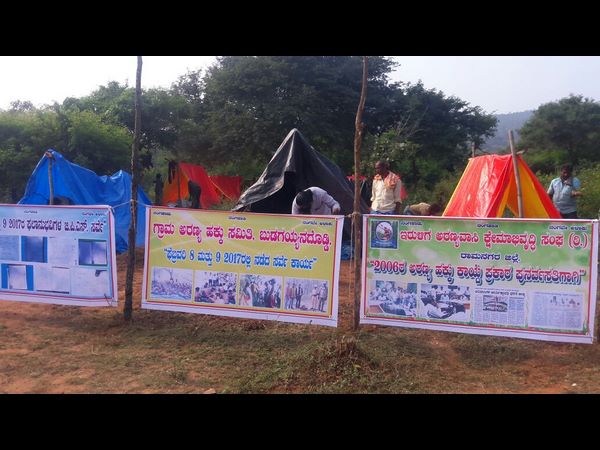 ಹಕ್ಕು ಪತ್ರಕ್ಕಾಗಿ ಆದಿವಾಸಿಗಳಿಂದ ಅರಣ್ಯದಲ್ಲಿ ಪ್ರತಿಭಟನೆ