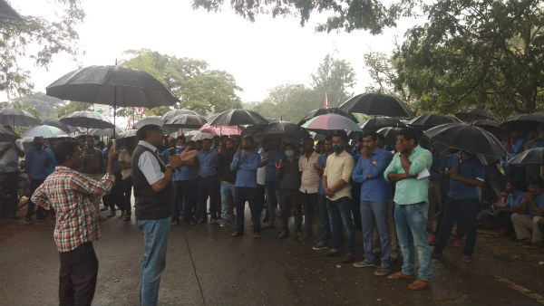 ಮಳೆಯಲ್ಲೂ ಮುಂದುವರೆದ ಟೊಯೋಟಾ ಕಾರ್ಮಿಕರ ಹೋರಾಟ