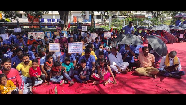 74ನೇ ದಿನಕ್ಕೆ ಕಾಲಿಟ್ಟ ಟೊಯೊಟಾ ಕಾರ್ಮಿಕರ ಹೋರಾಟ: ಸಾಥ್ ಕೊಟ್ಟ ಕುಟುಂಬಸ್ಥರು