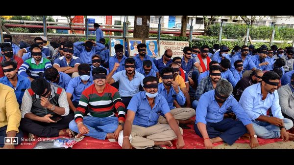 ಟೊಯೊಟಾ ಕಾರ್ಖಾನೆಯ ಆಡಳಿತ ಮಂಡಳಿ ಮತ್ತು ಸರ್ಕಾರ ಕಾರ್ಮಿಕರ ಹೋರಾಟಕ್ಕೆ ಮನ್ನಣೆ ನೀಡದೆ, ಕಣ್ಣುಮುಚ್ಚಿ ಕುಳಿತಿರುವುದನ್ನು ಖಂಡಿಸಿ ಕಾರ್ಮಿಕರು ಕಣ್ಣಿಗೆ ಕಪ್ಪು ಬಟ್ಟೆ ಕಟ್ಟಿಕೊಂಡು ಪ್ರತಿಭಟನೆ ನಡೆಸಿದರು.