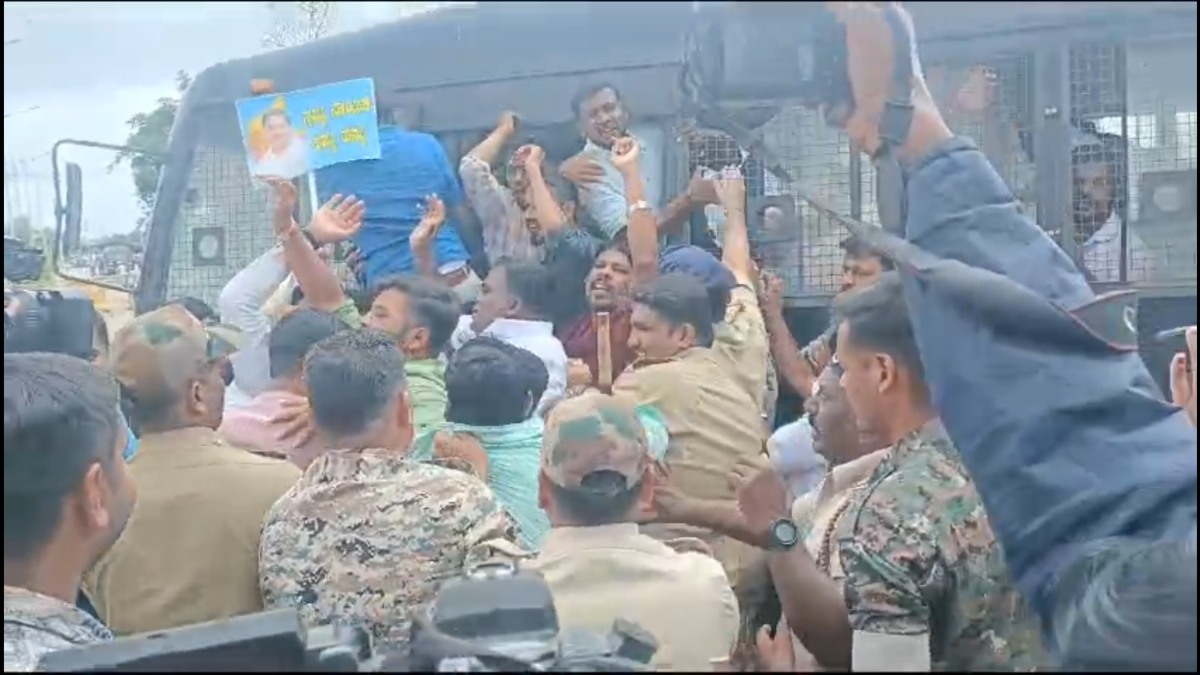 ಪ್ರತಿಭಟನಾಕಾರರನ್ನು ಮನೆ ಬಳಿ ಬಿಡದ ಪೊಲೀಸರೊಂದಿಗೆ ಪ್ರತಿಭಟನಾಕಾರರು ವಾಗ್ವಾದವನ್ನು ಮಾಡಿದರು. ಅಲ್ಲದೆ ದಾರಿ ಮಧ್ಯೆದಲ್ಲೇ ಕಾಂಗ್ರೆಸ್ ಕಾರ್ಯಕರ್ತರನ್ನು ಪೊಲೀಸರನ್ನು ವಶಕ್ಕೆ ಪಡೆದುಕೊಂಡಿದ್ದಾರೆ. ಕಾಂಗ್ರೆಸ್ ಕಾರ್ಯಕರ್ತರನ್ನ ಪೊಲೀಸ್ ವಾಹನದಲ್ಲಿ ಕರೆದುಕೊಂಡು ಹೋಗಿರುವುದು ಕಂಡು ಬಂದಿದೆ.