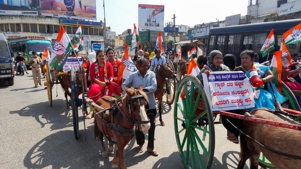ತೈಲ ಬೆಲೆ ಏರಿಕೆ ವಿರುದ್ಧ ಕಾಂಗ್ರೆಸ್ ವಿಭಿನ್ನ ಪ್ರತಿಭಟನೆ