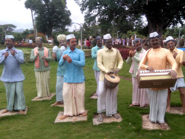 ರೈತ ಕುಟುಂಬ ಸಮೇತ ಬೇಸಾಯ ಮಾಡುವ ದೃಶ್ಯ, ಭತ್ತ ನಾಟಿ ಮಾಡುವ ದೃಶ್ಯ, ದೇಶಿಯ ಕಲೆಗಳನ್ನು ಪ್ರತಿಬಿಂಬಿಸುವ ಡೊಳ್ಳುಕುಣಿತ, ಜಗ್ಗಲಿಗೆ ಕುಣಿತ, ಕೋಲು ಕುಣಿತ, ಮಂಗಳವಾದ್ಯ, ಭಜನೆ ಪ್ರದರ್ಶನ ಮಾಡುತ್ತಿರುವ ಜನರನ್ನು ಹೋಲುವ ಕಲಾಕೃತಿಗಳು, ಕುರುಬರ ಬಾಲಕ ಕುರಿ ಕಾಯುವ ದೃಶ್ಯ, ವಯೋವೃದ್ಧ ದನ ಕಾಯುವ ಹಾಗೂ ಎಮ್ಮೆ ಮೇಲೆ ಬಾಲಕ ಕುಳಿತ ಕಲಾಕೃತಿಗಳು ಉದ್ಯಾನದಲ್ಲಿದ್ದು, ಪ್ರವಾಸಿಗರನ್ನು ಆಕರ್ಷಿಸಲಿವೆ.