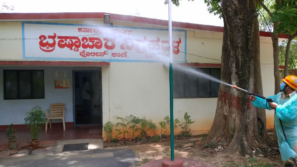 ಶಿವಮೊಗ್ಗ, ಮೇ 20: ಶಿವಮೊಗ್ಗ ಜಿಲ್ಲೆಯಲ್ಲಿ ಪೊಲೀಸ್ ಅಧಿಕಾರಿಗಳು ಕ್ವಾರಂಟೈನ್ ಆದ ಹಿನ್ನೆಲೆಯಲ್ಲಿ ಮುಂಜಾಗ್ರತಾ ಕ್ರಮವಾಗಿ ಎಲ್ಲ ಪೊಲೀಸ್ ಠಾಣೆಗಳಿಗೆ ಸ್ಯಾನಿಟೈಸ್ ಮಾಡಲಾಗಿದೆ.