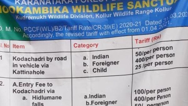 1/4/2021ರಿಂದಲೇ ಜಾರಿಗೆ ಬರುವಂತೆ ಶುಲ್ಕಗಳನ್ನು ಏರಿಕೆ ಮಾಡಲಾಗಿದೆ. ಈ ಕುರಿತು ಪ್ರವಾಸಿಗರಿಗೆ ಮಾಹಿತಿ ನೀಡಲು ಫಲಕಗಳನ್ನು ಸಹ ಅಳವಡಿಕೆ ಮಾಡಲಾಗಿದೆ.