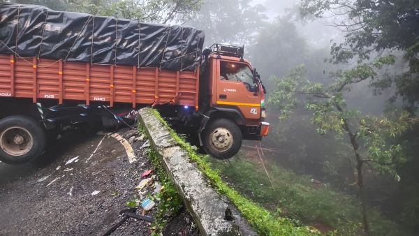 ಆಗುಂಬೆ ಘಾಟ್ನಲ್ಲಿ ಅಪಘಾತ, ಪ್ರಪಾತಕ್ಕೆ ಮುಖ ಮಾಡಿ ನಿಂತ ಲಾರಿ