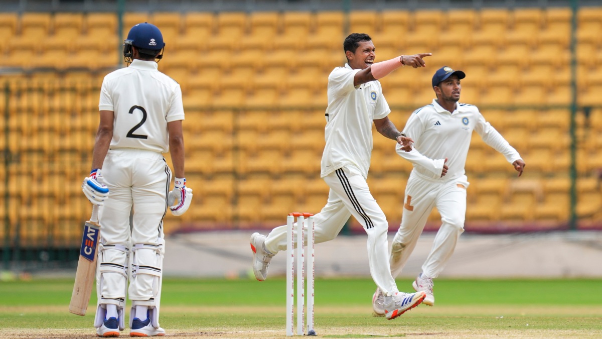 ಟಾಸ್ ಗೆದ್ದ ಭಾರತ ಡಿ ತಂಡ ಬೌಲಿಂಗ್ ಆಯ್ಕೆ ಮಾಡಿಕೊಂಡಿತು. ಮೊದಲು ಬ್ಯಾಟಿಂಗ್ ಮಾಡಿದ ಭಾರತ ಎ ತಂಡ ಮೊದಲ ಇನ್ನಿಂಗ್ಸ್ನಲ್ಲಿ 290 ರನ್ಗಳಿಗೆ ಆಲೌಟ್ ಆಯಿತು. ಶಂಸ್ ಮುಲಾನಿ 89 ರನ್ ಗಳಿಸಿದರೆ, ತನುಷ್ ಕೊಟ್ಯಾನ್ 53 ರನ್ ಗಳಿಸಿ ಗಮನ ಸೆಳೆದರು. ಭಾರತ ಡಿ ತಂಡದ ಬೌಲರ್ ಗಳಾದ ಹರ್ಷಿತ್ ರಾಣಾ 4 ವಿಕೆಟ್ ಪಡೆದರು.