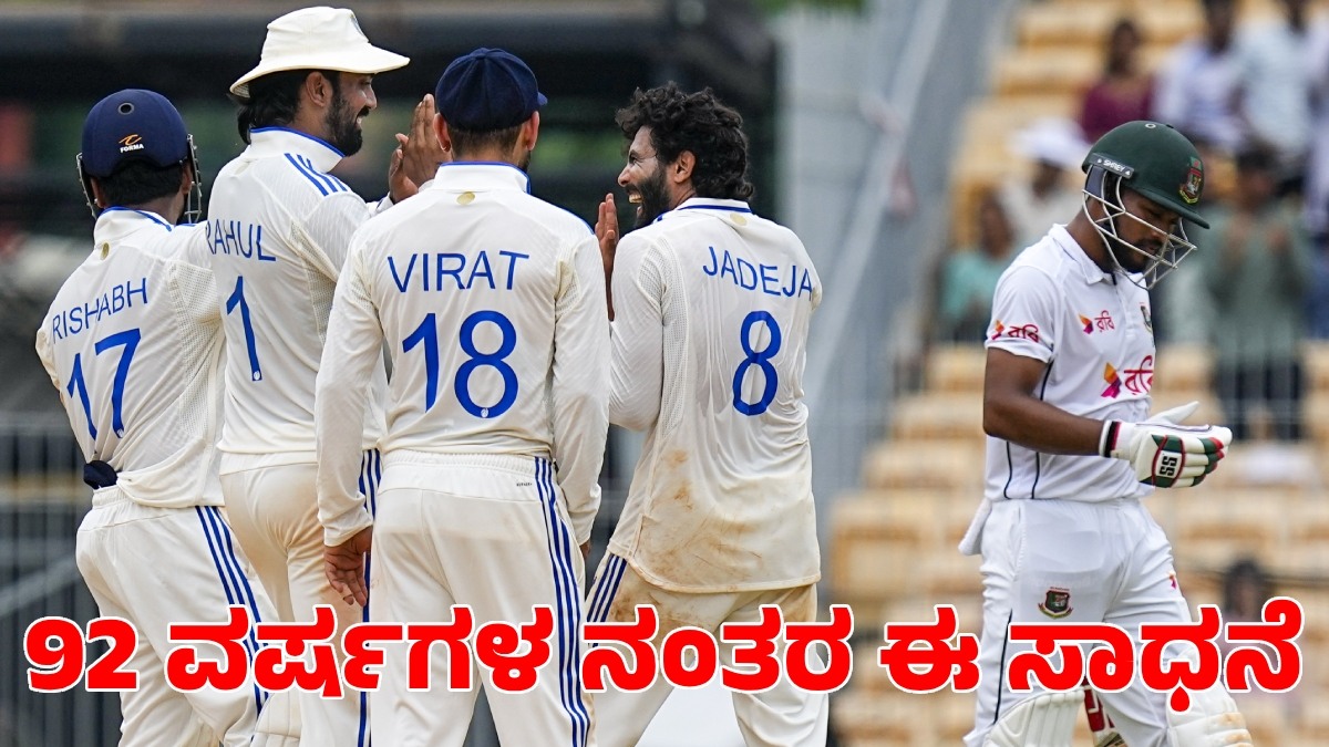 ಚೆನ್ನೈನಲ್ಲಿ ನಡೆದ ಬಾಂಗ್ಲಾದೇಶ ವಿರುದ್ಧದ ಟೆಸ್ಟ್ ಸರಣಿಯ ಮೊದಲ ಪಂದ್ಯದಲ್ಲಿ ಭಾರತ 280 ರನ್ಗಳ ಬೃಹತ್ ಗೆಲುವು ಸಾಧಿಸಿದೆ. ಬಾಂಗ್ಲಾದೇಶ ವಿರುದ್ಧದ ಟೆಸ್ಟ್ ಪಂದ್ಯ ಗೆಲ್ಲುವ ಮೂಲಕ ಹೊಸ ದಾಖಲೆಯೊಂದನ್ನು ಬರೆದಿದೆ. ಮೊದಲ ಬಾರಿಗೆ ಭಾರತ ತಂಡ ಟೆಸ್ಟ್ ಕ್ರಿಕೆಟ್ನಲ್ಲಿ ಸೋಲಿಗಿಂತ ಹೆಚ್ಚು ಗೆಲುವುಗಳನ್ನು ಹೊಂದಿದೆ. ಗೆಲುವಿನ ಸರಾಸರಿ ಇದೀಗ ಸೋಲಿನ ಸರಾಸರಿಗಿಂತ ಹೆಚ್ಚಾಗಿದ್ದು, 92 ವರ್ಷಗಳಲ್ಲಿ ಇದೇ ಮೊದಲ ಬಾರಿಗೆ ಭಾರತ ಸೋಲಿಗಿಂತ ಹೆಚ್ಚಿನ ಪಂದ್ಯಗಳನ್ನು ಗೆದ್ದು ಐತಿಹಾಸಿಕ ಸಾಧನೆ ಮಾಡಿದೆ.