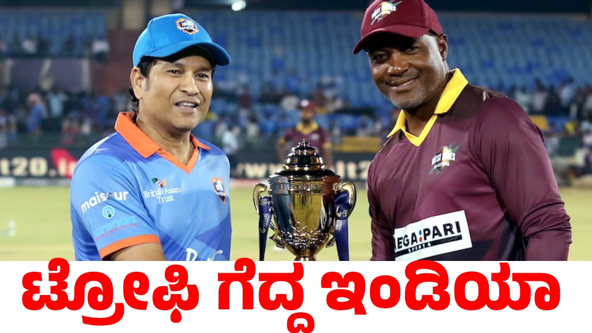 ಇಂಟರ್ನ್ಯಾಷನಲ್ ಮಾಸ್ಟರ್ಸ್ ಲೀಗ್ ಟಿ20 2025ರ ಫೈನಲ್ ಪಂದ್ಯದಲ್ಲಿ ಭಾರತ ವೆಸ್ಟ್ ಇಂಡೀಸ್ ವಿರುದ್ಧ 6 ವಿಕೆಟ್ಗಳ ಭರ್ಜರಿ ಗೆಲುವು ಸಾಧಿಸಿದ್ದು ಪ್ರಶಸ್ತಿ ಗೆದ್ದುಕೊಂಡಿದೆ. ಸಚಿನ್ ನಾಯಕತ್ವದ ಇಂಡಿಯಾ ಮಾಸ್ಟರ್ಸ್ ಫೈನಲ್ ಪಂದ್ಯದಲ್ಲಿ ಅಮೋಘ ಬ್ಯಾಟಿಂಗ್ ಪ್ರದರ್ಶನ ನೀಡುವ ಮೂಲಕ ವೆಸ್ಟ್ ಇಂಡೀಸ್ ಮಾಸ್ಟರ್ಸ್ ವಿರುದ್ಧ ಸುಲಭ ಗೆಲುವು ಸಾಧಿಸಿತು.