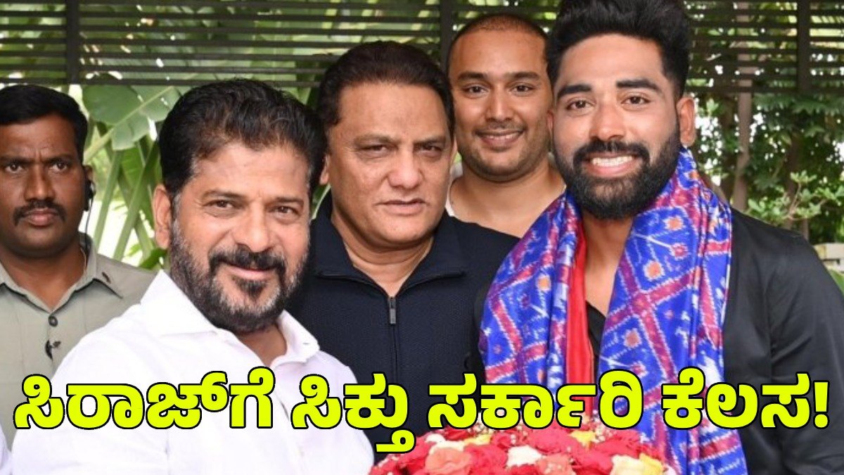 ಮೊಹಮ್ಮದ್ ಸಿರಾಜ್ಗೆ ಸನ್ಮಾನ ಮಾಡಿರುವ ತೆಲಂಗಾಣ ಮುಖ್ಯಮಂತ್ರಿ ರೇವಂತ್ ರೆಡ್ಡಿ, ನಿವೇಶನ ಮತ್ತು ಸರ್ಕಾರಿ ಕೆಲಸ ಕೊಡುವುದಾಗಿ ಘೋಷಣೆ ಮಾಡಿದ್ದಾರೆ.