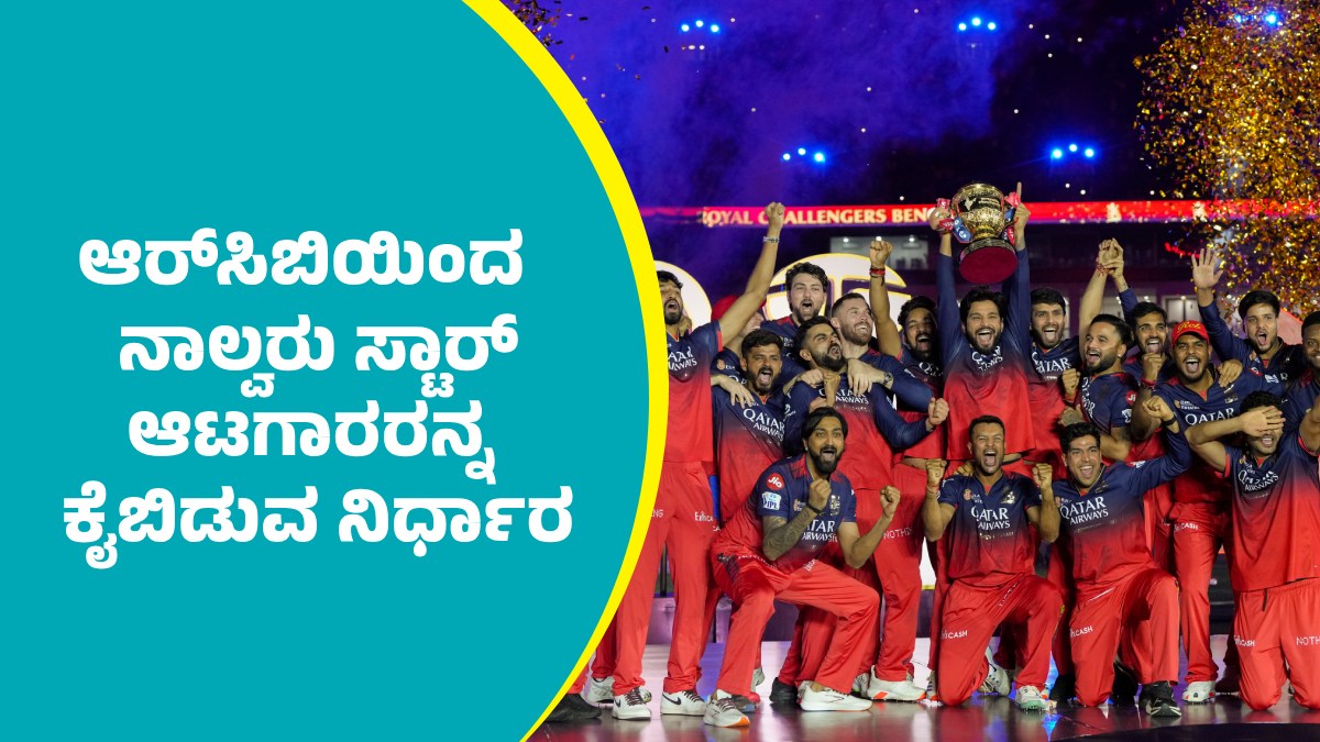 RCB: ಆರ್ಸಿಬಿ 2025 ಐಪಿಎಲ್ ಫೈನಲ್ ಪಂದ್ಯದಲ್ಲಿ ಆರ್ಸಿಬಿ ಭರ್ಜರಿಯಾಗಿ ಗೆದ್ದು 17 ವರ್ಷಗಳ ಬಳಿಕ ಮೊದಲ ಬಾರಿ ಟ್ರೋಫಿಗೆ ಮುತ್ತಿಟ್ಟಿದೆ. ಈ ನಡುವೆಯೇ ಆಘಾತಕಾರಿ ವಿಚಾರವೊಂದು ಹೊರಬಿದ್ದಿದ್ದು, ಮುಂದಿನ ಆವೃತ್ತಿಯಿಂದ ಕನ್ನಡಿಗ ಮಯಾಂಕ್ ಅಗರ್ವಾಲ್ ಸೇರಿ ನಾಲ್ವರು ಆಟಗಾರರನ್ನು ಕೈಬಿಡಲು ಪ್ರಾಂಚೈಸಿ ನಿರ್ಧರಿಸಿದೆ. ಹಾಗಾದ್ರೆ ಕಾರಣ ಏನು ಹಾಗೂ ಯಾರು ಎನ್ನುವ ಮಾಹಿತಿಯನ್ನು ಇಲ್ಲಿ ನೀಡಲಾಗಿದೆ ತಿಳಿಯಿರಿ.