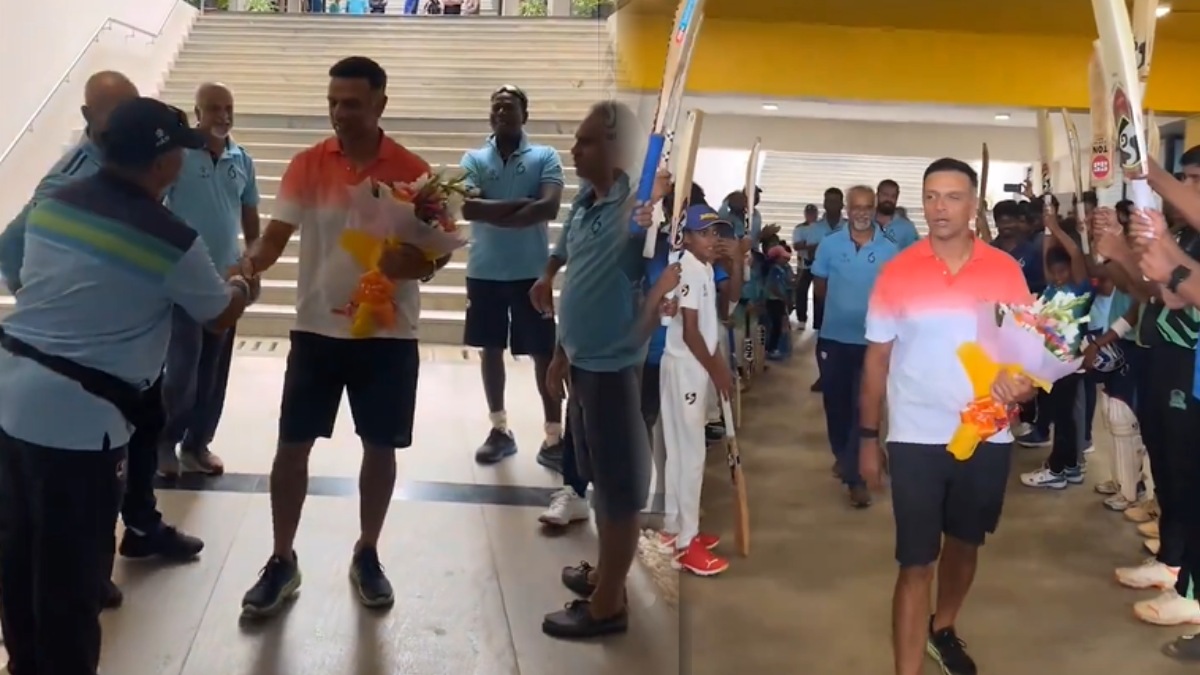 ರಾಹುಲ್ ದ್ರಾವಿಡ್ ಅವರ ಕ್ರಿಕೆಟ್ ಅಕಾಡಿಮಿ ಬೆಂಗಳೂರಿನಲ್ಲಿದೆ. ಈ ಅಕಾಡಮಿಗೆ ದ್ರಾವಿಡ್ ಸೋಮವಾರ ಭೇಟಿ ನಿಡಿದರು. ಈ ವೇಳೆ ವಿಶ್ವ ಚಾಂಪಿಯನ್ ಕೋಚ್ಗೆ ಮಕ್ಕಳು ಹೃದಯ ಸ್ವರ್ಷಿ ಸ್ವಾಗತ ನೀಡಿದರು. ದ್ರಾವಿಡ್ ಅವರು ಅಂಗಳಕ್ಕೆ ಬರುತ್ತಿದ್ದಂತೆ ಚಿಕ್ಕ ಮಕ್ಕಳು, ಬ್ಯಾಟ್ ಎತ್ತಿ ಗೌರವ ಸೂಚಿಸಿದರು.