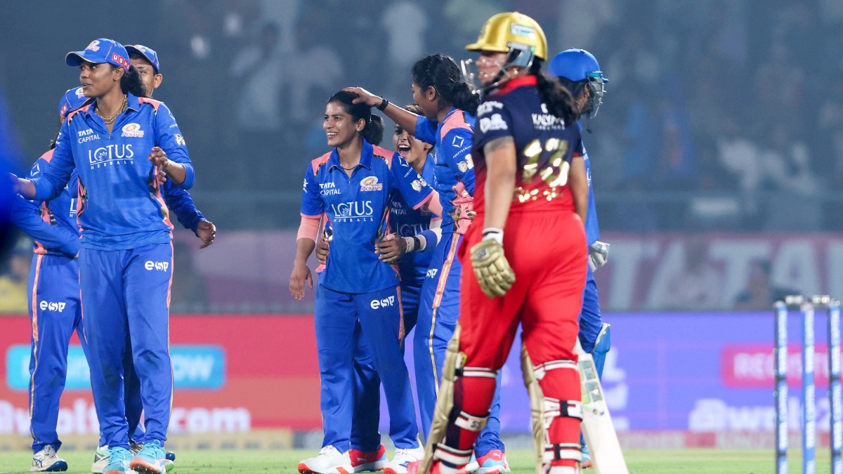 ಮುಂಬೈ ಬೌಲರ್ಗಳ ಅಬ್ಬರ: ರಿಚಾ ಘೋಷ್ 50 ಎಸೆತಗಳಲ್ಲಿ 10 ಬೌಂಡರಿ, 6 ಸಿಕ್ಸರ್ಗಳೊಂದಿಗೆ 90 ರನ್ ಸಿಡಿಸಿ ಅಬ್ಬರಿಸಿದರೆ, ಶ್ರೇಯಾಂಕ ಪಾಟೀಲ್ 5 ಎಸೆತಗಳಲ್ಲಿ 12 ರನ್ಗಳೊಂದಿಗೆ ಔಟಾಗದೆ ಉಳಿದರು. ಮುಂಬೈ ಪರ ಹೇಲಿ ಮ್ಯಾಥ್ಯೂಸ್ ಮೂರು ವಿಕೆಟ್ ಪಡೆದರೆ, ಶಬ್ನಿಮ್ ಇಸ್ಮಾಯಿಲ್ ಹಾಗೂ ಅಮೆಲಿಯಾ ಕೆರ್ ತಲಾ ಎರಡು ವಿಕೆಟ್ ಕಬಳಿಸಿದರು.