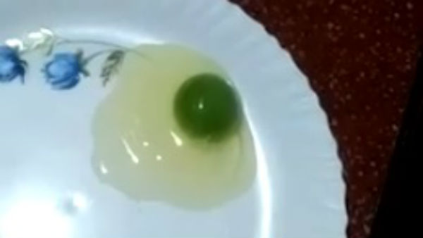 ಮಲಪ್ಪುರಂ, ಮೇ 28: ಮೊಟ್ಟೆಯ ಒಳಗೆ ಸಾಮಾನ್ಯವಾಗಿ ಹಳದಿ ಮತ್ತು ಬಿಳಿ ಪದರವಿರುತ್ತದೆ. ಆದರೆ ಈ ಮೊಟ್ಟೆಯಲ್ಲಿ ಹಳದಿ ಪದರದ ಬದಲಾಗಿ ಹಸಿರು ಪದರವಿರುವುದು ಎಲ್ಲರಿಗೂ ಆಶ್ಚರ್ಯ ಮೂಡಿಸಿದೆ.