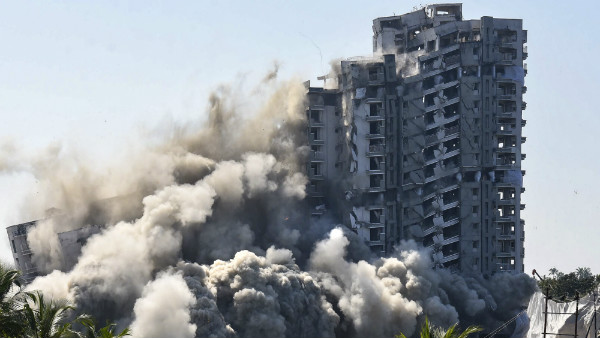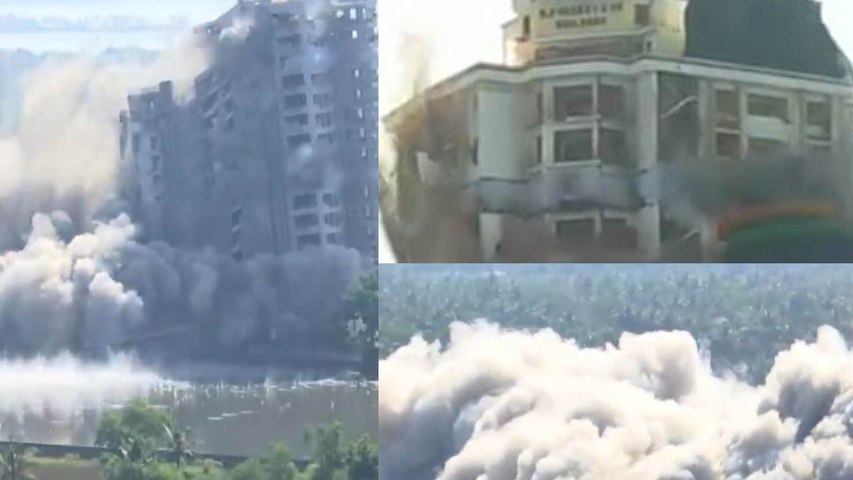 ನಾಲ್ಕರಲ್ಲಿ ಅತ್ಯಂತ ದೊಡ್ಡದಾದ, 128 ಫ್ಲ್ಯಾಟ್ಗಳನ್ನು ಒಳಗೊಂಡಿದ್ದ 17 ಮಹಡಿ ಎತ್ತರದ ಜೈನ್ ಕೋರಲ್ ಕೋವ್ ಕಟ್ಟಡವನ್ನು 372 ಕೆ.ಜಿ. ತೂಕದ ಸ್ಫೋಟಕ ಬಳಸಿ ಭಾನುವಾರ ಬೆಳಿಗ್ಗೆ ಉರುಳಿಸಲಾಯಿತು. ಬೃಹತ್ ಕಟ್ಟಡಗಳು ಕೆಲವೇ ಸೆಕೆಂಡುಗಳಲ್ಲಿ ಕುಸಿದು, ದೂಳು ಮತ್ತು ಅವಶೇಷಗಳಾಗಿ ಬದಲಾದವು.