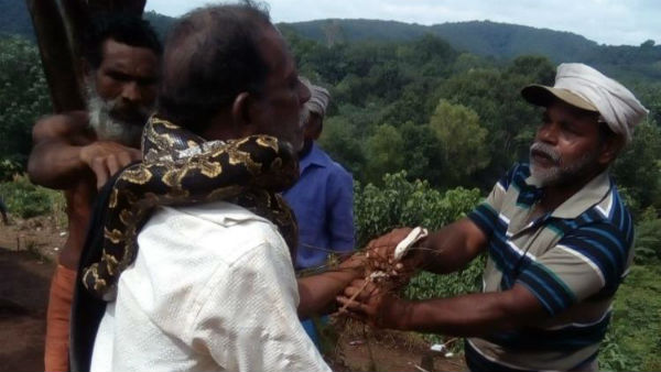 ಕುತ್ತಿಗೆಗೆ ಸುತ್ತಿಕೊಂಡ ಭಾರಿ ಹೆಬ್ಬಾವಿನಿಂದ ಬಚಾವಾದ ವೃದ್ಧ