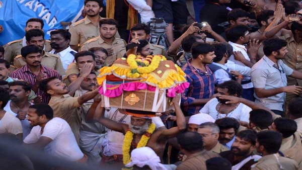85 ವರ್ಷದ ಕುಳತಿನಲ್ ಗಗಾಧರನ್ ಪಿಳ್ಳೈ ಅವರು ತಿರುವಾಭರಣಗಳನ್ನು ಸಾಗಿಸಿದರು. ಇದು ಅವರ 65ನೇ ವರ್ಷದ ಪಯಣವಾಗಿದೆ.