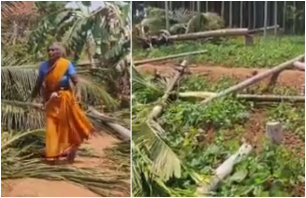 170 ಅಡಿಕೆ ಮರ ಕಡಿದ ಅಧಿಕಾರಿಗಳು: ಅಜ್ಜಿಯ ಆಕ್ರಂದನ