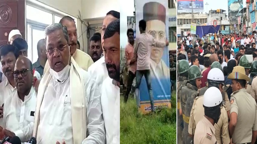 ತುಮಕೂರು, ಆಗಸ್ಟ್ 16: ತುಮಕೂರು ನಗರದಲ್ಲಿ ವಿನಾಯಕ ದಾಮೋದರ ಸಾವರ್ಕರ್ ಅವರ ಭಾವಚಿತ್ರವಿರುವ ಬ್ಯಾನರ್ ಅನ್ನು ಜನರ ಗುಂಪೊಂದು ಹರಿದಿದ್ದು, ಶಿವಮೊಗ್ಗ, ಬೆಂಗಳೂರು ಮೆಟ್ರೋ ನಂತರ ಈಗ ತುಮಕೂರಿಗೂ ಫೊಟೋ ವಿವಾದ ಹಬ್ಬಿದೆ.