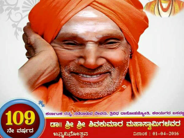 ತುಮಕೂರು, ಏಪ್ರಿಲ್ 01 : 109 ವರ್ಷ ತುಂಬಿದ ನಡೆದಾಡುವ ದೇವರು, ತ್ರಿವಿಧ ದಾಸೋಹಿ ಸಿದ್ಧಗಂಗಾ ಮಠದ ಡಾ.ಶಿವಕುಮಾರ ಸ್ವಾಮೀಜಿಗಳು ಇನ್ನೂ ನೂರೆಂಟು ಕಾಲ ಬಾಳಲಿ ಎಂಬ ಆಶಯದೊಂದಿಗೆ ಏ.1ರಂದು ಅವರ ಹುಟ್ಟುಹಬ್ಬವನ್ನು ಆಚರಣೆ ಮಾಡಲಾಗುತ್ತಿದೆ.