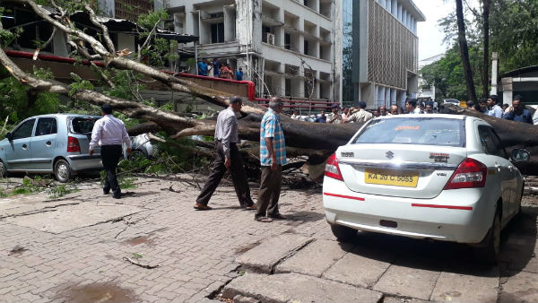 ಮಣಿಪಾಲದ ಕೆಎಂಸಿ ಆವರಣದಲ್ಲಿ ಉರುಳಿದ ಮರ; ತಪ್ಪಿದ ಭಾರೀ ಅನಾಹುತ
