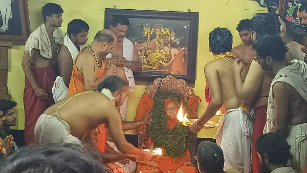 ಶ್ರೀಗಳ ಬ್ರಹ್ಮ ರಂಧ್ರದ ಮೇಲೆ ತೆಂಗಿನ ಕಾಯಿ ಒಡೆಯಲಾಯಿತು. ತೆಂಗಿನ ಕಾಯಿ ಒಡೆಯುವ ಮೂಲಕ ಬ್ರಹ್ಮ ರಂಧ್ರ ತೆರೆಯಬೇಕೆಂಬುದು ನಂಬಿಕೆ.