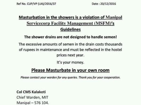 ಮಣಿಪಾಲ್ ಬಾಯ್ಸ್ ಹಾಸ್ಟೆಲ್ ನಲ್ಲಿ ಹಸ್ತಮೈಥುನ, ನೋಟಿಸ್