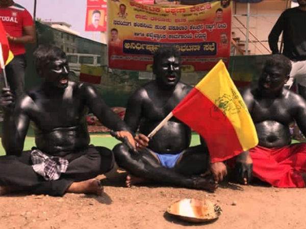 ಕರ್ನಾಟಕ ರಕ್ಷಣಾ ವೇದಿಕೆ ವತಿಯಿಂದ ನಡೆಸಲಾಗುತ್ತಿರುವ ಈ ಪ್ರತಿಭಟನೆ 23ನೇ ದಿನಕ್ಕೆ ಕಾಲಿಟ್ಟಿದ್ದು, ಪ್ರತಿಭಟನಾಕಾರರರು ಇಂದು ಮಸಿ ಬಳಿದುಕೊಂಡು ಅರೆಬೆತ್ತಲೆ ಪ್ರತಿಭಟನೆ ನಡೆಸಿ ಗಮನಸೆಳೆದರು.