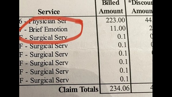 ಒಟ್ಟು ಬಿಲ್ ಮೊತ್ತ 223ಡಾಲರ್ ಆಗಿದ್ದು, ಆಸ್ಪತ್ರೆಯು ಹೆಚ್ಚುವರಿಯಾಗಿ 11 ಡಾಲರ್ ಪಡೆದಿದೆ. ಭಾವನೆಗಳು ಉಚಿತ ಎಂದುಕೊಂಡಿದ್ದೆ ಆದರೆ ಭಾವನೆಗಳಿಗೂ ಬೆಲೆ ಕಟ್ಟಬೇಕು ಎಂದು ತಿಳಿದಿರಲಿಲ್ಲ ಎಂದು ಹೇಳಿಕೊಂಡಿದ್ದಾರೆ.