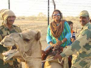 ಮತ್ತಿಬ್ಬರು ಸೈನಿಕರು ಜೊತೆಗೂಡಿದರು. ನಾನು excitementನಿಂದ ಕೂಗಿದೆ, ಕಿರುಚಿದೆ. ಅವರುಗಳು ಅಷ್ಟೇ ಉತ್ಸುಕತೆಯಿಂದ ನನ್ನನ್ನೋಡಿ ಮುಗುಳ್ನಗುತ್ತಿದ್ದರು. ನನ್ನೊಳಗೆ ಭಗತ್ಸಿಂಗ್ ಆವಾಹಿಸಿಕೊಂಡಿದ್ದ. ಮೈಮೇಲಿದ್ದ ದುಪ್ಪಟ್ಟವನ್ನು ಕಿತ್ತೊಗೆದು 20 ಅಡಿಗಳಷ್ಟು ಎತ್ತರವಿದ್ದ ಅಟ್ಟಣಿಗೆಯ ಮೇಲೆ ಸರಸರನೆ ಹತ್ತಿ ಗಜಗಾತ್ರದ ಬೈನಾಕ್ಯುಲರ್ನಲ್ಲಿ ಪಾಕಿಸ್ತಾನವನ್ನು ನೋಡಿಯೇ ಬಿಟ್ಟೆ! ಆದ್ಯಾವ ಶಕ್ತಿ ಹೊಕ್ಕಿತ್ತೋ, ದೈತ್ಯಾಕಾರದ ದೇಹದಿಂದ ಭಯಾನಕವಾದ ಧ್ವನಿ ಹೊರಡಿಸುತ್ತಿದ್ದ ಒಂಟೆಯ ಡುಬ್ಬವನ್ನು ಯಾರ ಸಹಾಯವೂ ಪಡೆಯದೆ ನಿಮಿಷಮಾತ್ರದಲ್ಲಿ ಹತ್ತಿಬಿಟ್ಟೆ ಹೀಗೆ. . . . .ಫೋಟೊ-5