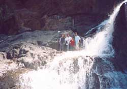 ಧುಮ್ಮಿಕ್ಕಿ ಹರಿಯುವ ಜಲಧಾರೆಯಲ್ಲೂ : ಎಲ್ಲ ಅಡೆತಡೆಗಳನ್ನೂ ದಾಟಿ ಜಲಪಾತ ಮುಟ್ಟಿದಾಗ ಏನು ಖುಶಿ. ಫೋಟೊ ಕ್ಲಿಕ್ಕಿಸಿದ್ದೆ ಕ್ಲಿಕ್ಕಿಸಿದ್ದು. ನಿಂತು, ಕೂತು, ಬಗ್ಗಿ ಎಲ್ಲ ಭಂಗಿಗಳಲ್ಲೂ. ತಿಮ್ಮಣ್ಣ ನಾಯ್ಕರ ಪ್ರಕಾರ ಜಲಪಾತದ ಪಾದ ಮುಟ್ಟಿದ್ದು ನಮ್ಮ ತಂಡವೊಂದೆ. ಅದು ಕೇಳಿದ್ದೆ ಇನ್ನೊಂದು ಫೋಟೊ. ಬಲ್ಲಿರೇನಯ್ಯ? ದೇವಕಾರು ಜಲಪಾತಕ್ಕೆ ಯಾರೆಂದು ಕೇಳಿದ್ದೀರಿ? ಪೋಸಿನಲ್ಲಿ.