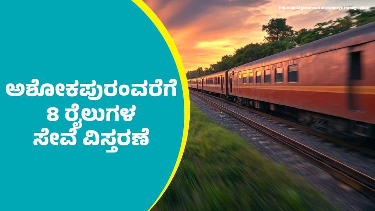 ಭಾರತೀಯ ರೈಲ್ವೆಯು ಪ್ರಯಾಣಿಕರ ಅನುಕೂಲಕ್ಕೆ ತಕ್ಕಂತೆ ಶುಭಸುದ್ದಿಯನ್ನು ನೀಡುತ್ತಲೇ ಇರುತ್ತದೆ. ಹಾಗೆಯೇ ಇದೀಗ ಮೈಸೂರು ಮತ್ತು ಬೆಂಗಳೂರು ರೈಲ್ವೆ ನಿಲ್ದಾಣಗಳ ನಡುವೆ ಸಂಚರಿಸುತ್ತಿರುವ ಪ್ರಮುಖ ರೈಲುಗಳಲ್ಲಿ ಒಟ್ಟು 8 ರೈಲುಗಳು ಇನ್ಮುಂದೆ ಮೈಸೂರಿನ ಹೊರ ವಲಯದಲ್ಲಿನ ಅಶೋಕಪುರಂ ರೈಲ್ವೆ ನಿಲ್ದಾಣಗಳಿಗೂ ವಿಸ್ತರಣೆ ಆಗಲಿವೆ ಎನ್ನುವ ಮಾಹಿತಿ ಲಭ್ಯವಾಗಿದೆ. ಇಲ್ಲಿದೆ ನೋಡಿ ಸಂಪೂರ್ಣ ವಿವರ.